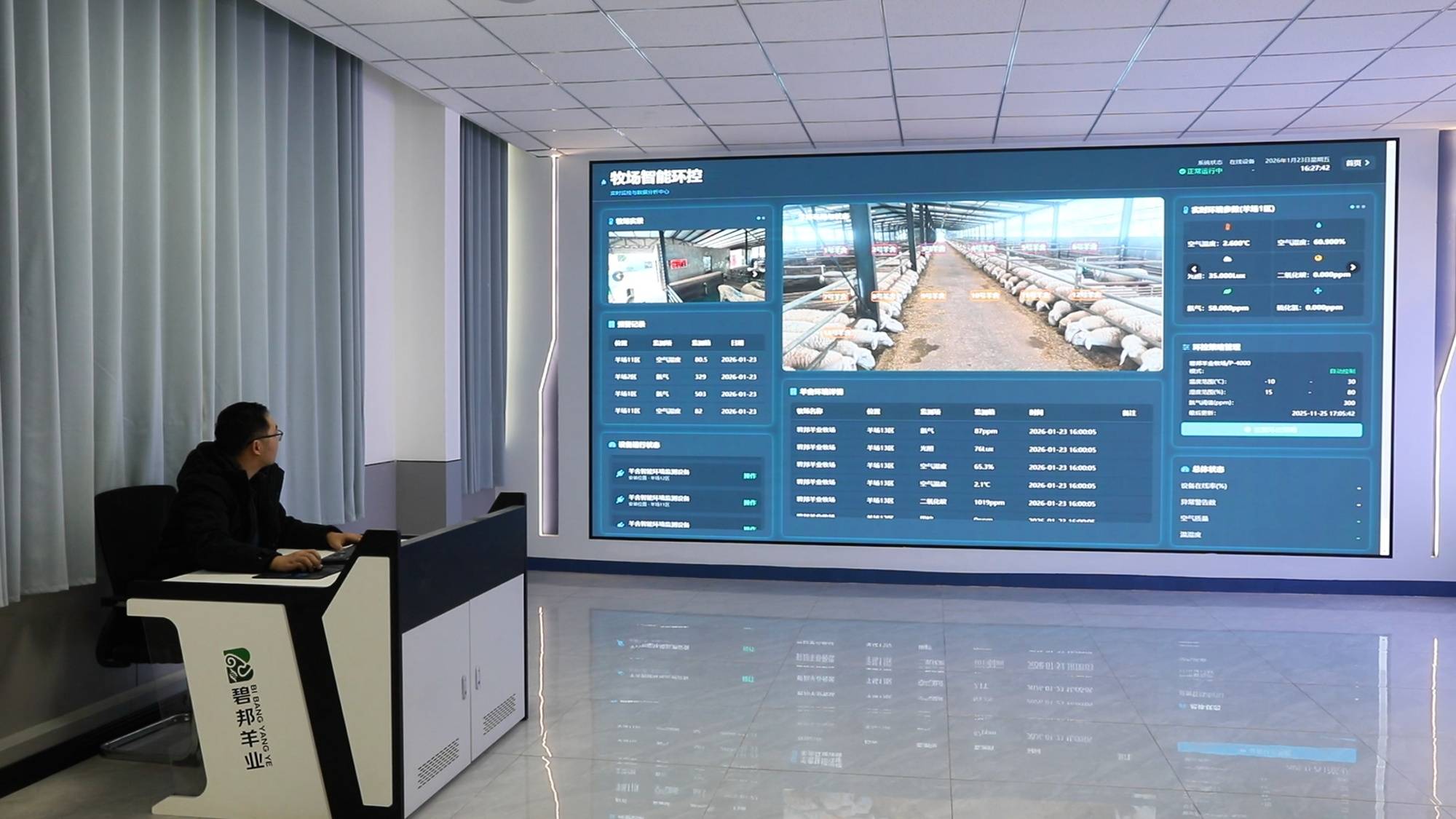 从传统养殖到智慧养殖的转型,科技是核心驱动力。碧邦羊业率先引入数字化管理模式,搭建起养殖管理、精准饲喂管理、智能环控三大智能化体系,让养羊实现“有数据、有标准、有智慧”。“我们为每只羊建立电子身份证,实现全生命周期信息追溯,通过数字化管理精准核算成本;结合生长数据生成个性化日粮配方,实现饲料优化与精准饲喂;智能环控系统实时监测环境参数,异常情况及时预警,让养殖全程可控可溯。”何海迎介绍,目前13栋羊舍仅需12名工作人员即可完成日常管理,科技应用不仅降低了30%以上的养殖成本,更从根本上保障了羊只品质与养殖效益的稳定,为和田地区肉羊产业智能化发展探索了可行路径。
