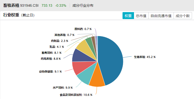 养殖ETF汇添富(159172)标的指数成分股集中度高,囊括各细分领域龙头。截至2026年3月31日,养殖ETF汇添富(159172)标的指数(中证畜牧养殖产业指数(931946))前十大权重股占比合计为67.29%,其中第一、第二大重仓股——温氏股份和牧原股份,合计占比高达29.13%,重仓A股优质“生猪龙头”;此外,指数重仓股还包括饲料加工龙头海大集团(占比8.73%)、大北农(3.47%),以及乳制品龙头伊利股份(2.90%)。